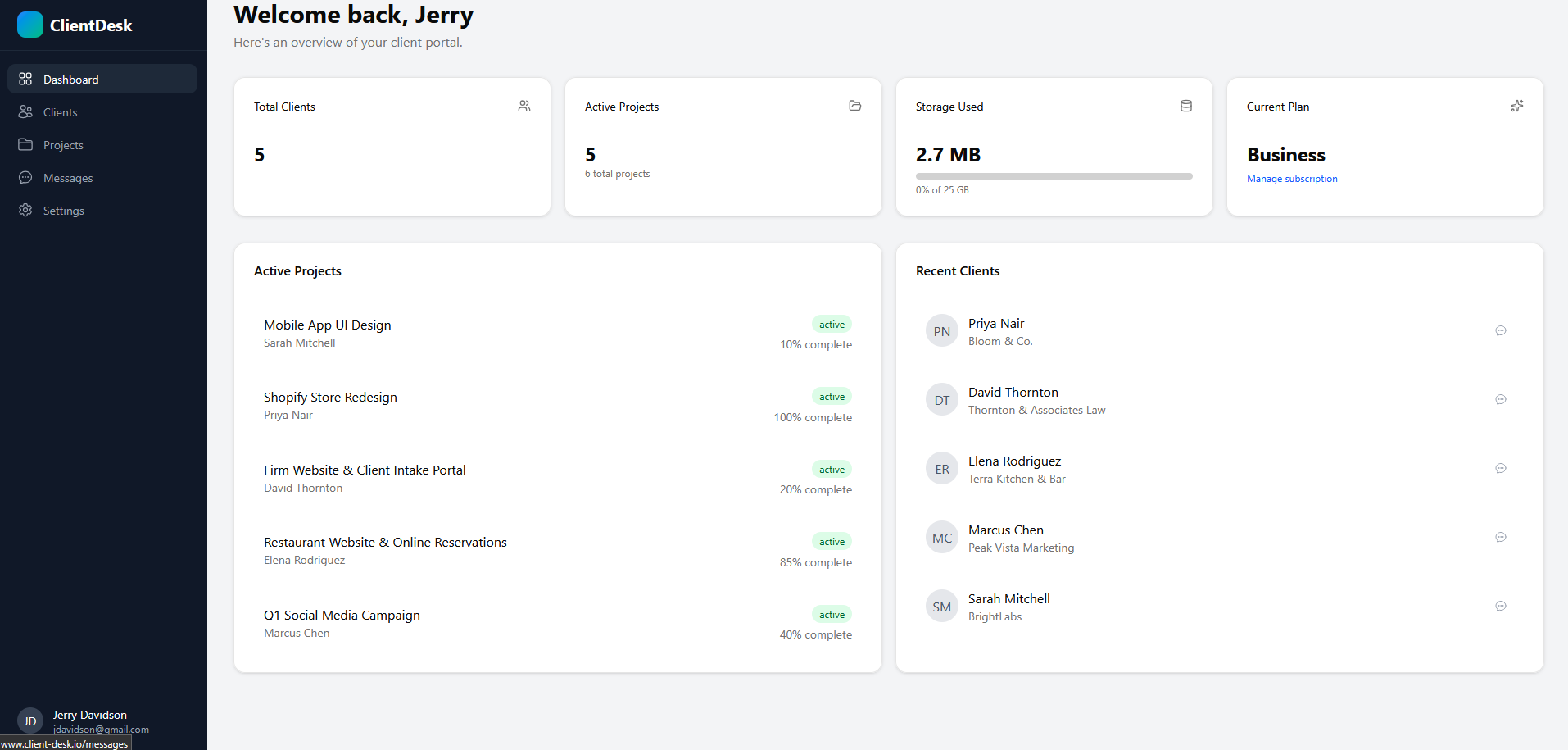 “I tried three other client portals before this. They all wanted me to learn a whole project management system. ClientDesk just does the portal part and does it well.”